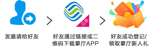 每邀请1名江苏移动掌厅新用户TA领取掌厅新人礼,您可得